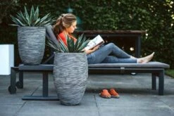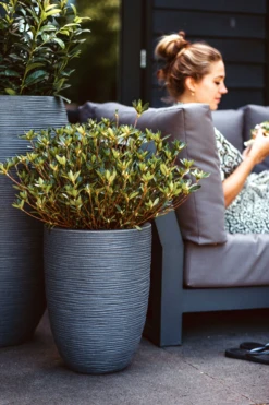 Capi Bloempot Nature Elegant Rib NL – D46 X H58cm – Donkergrijs